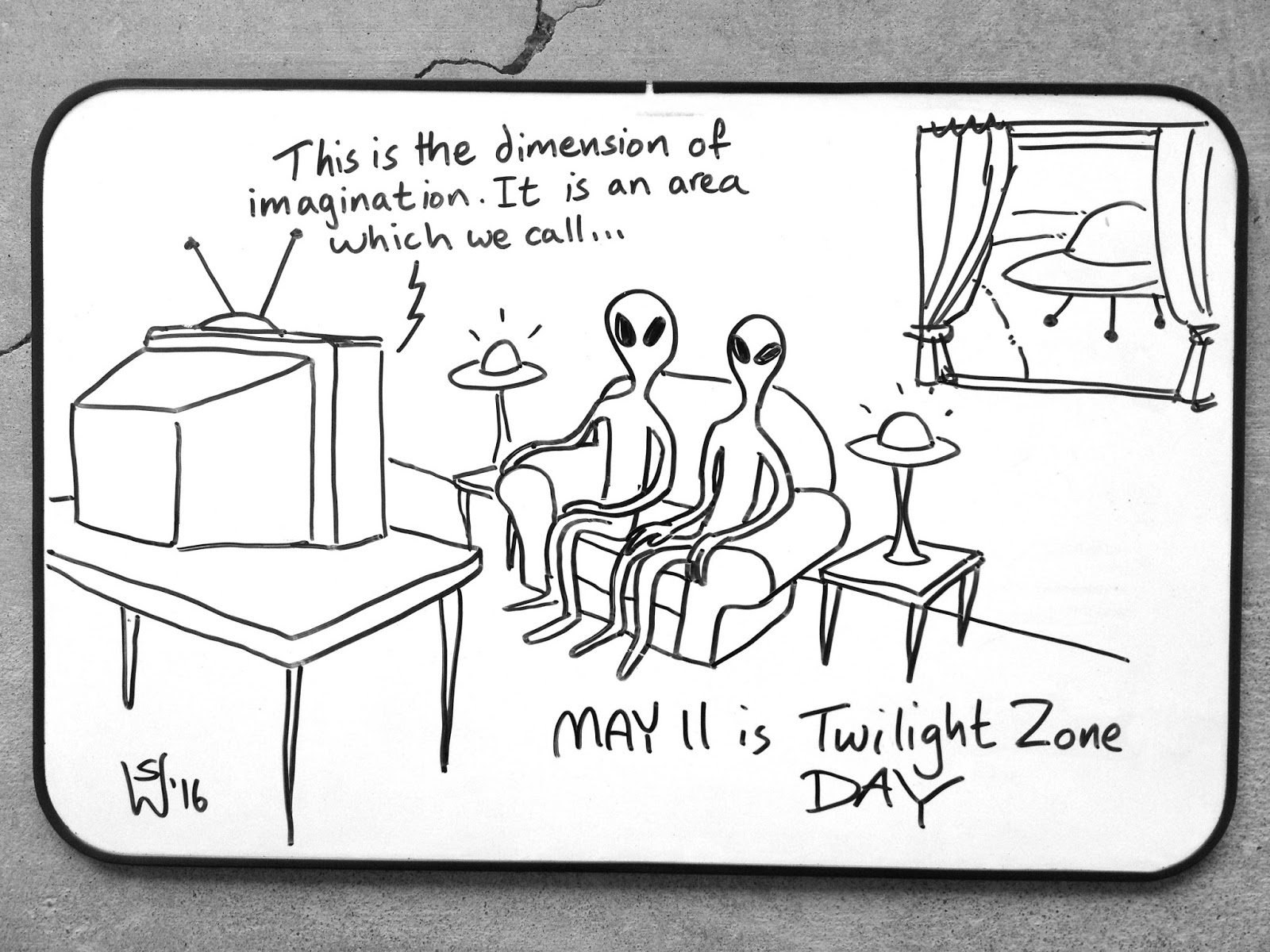 | Today's dry-erase whiteboard cartoon celebrates weather observer's day: May 4th |