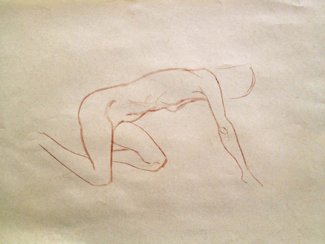 Quick gesture drawing, terra cotta pencil on paper